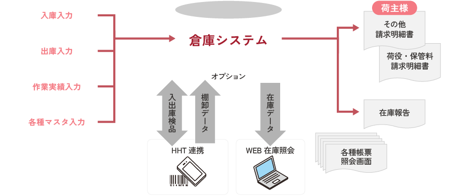- 各種連携可能(荷主データ、Web在庫照会、HHT)