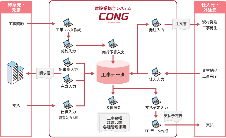 【DB連携】CONGのDBを参照し、独自帳票システムを構築 JV管理システムを合わせて導入