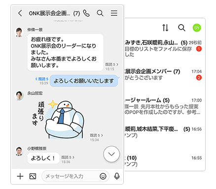 見慣れた画面と機能で誰でもすぐにチャットがはじめられ、1000種類以上の豊富なスタンプで、ビジネスでも気持ちが伝わります。 LINE WORKSの既読確認では、メッセージの既読/未読メンバーも確認可能です。